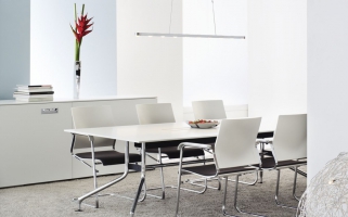 Designgleich zum Drehstuhl bieten wir die passenden Besucher- und Konferenzstühle als 4- Fuß oder Freischwinger an.