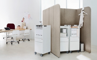 orga.cube ist ein Apothekerschrank, als Bürostauraum im direkten Zugriff am Schreibtisch. Er macht den Arbeitsplatz flexibel nutzbar und ermöglicht die Gestaltung von open space Landschaften als Wohlfühlbüros.